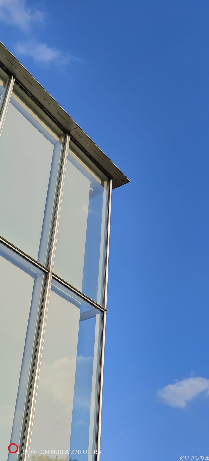 nubia Z70 Ultra カメラの風景撮影では、35mmレンズの特性が際立ち、美しい写真に仕上がります。実際に撮影してみるとやや赤みがかった色合いですが、遠近感や立体感が非常に豊かでまるで一眼レフで撮影したような仕上がりです。