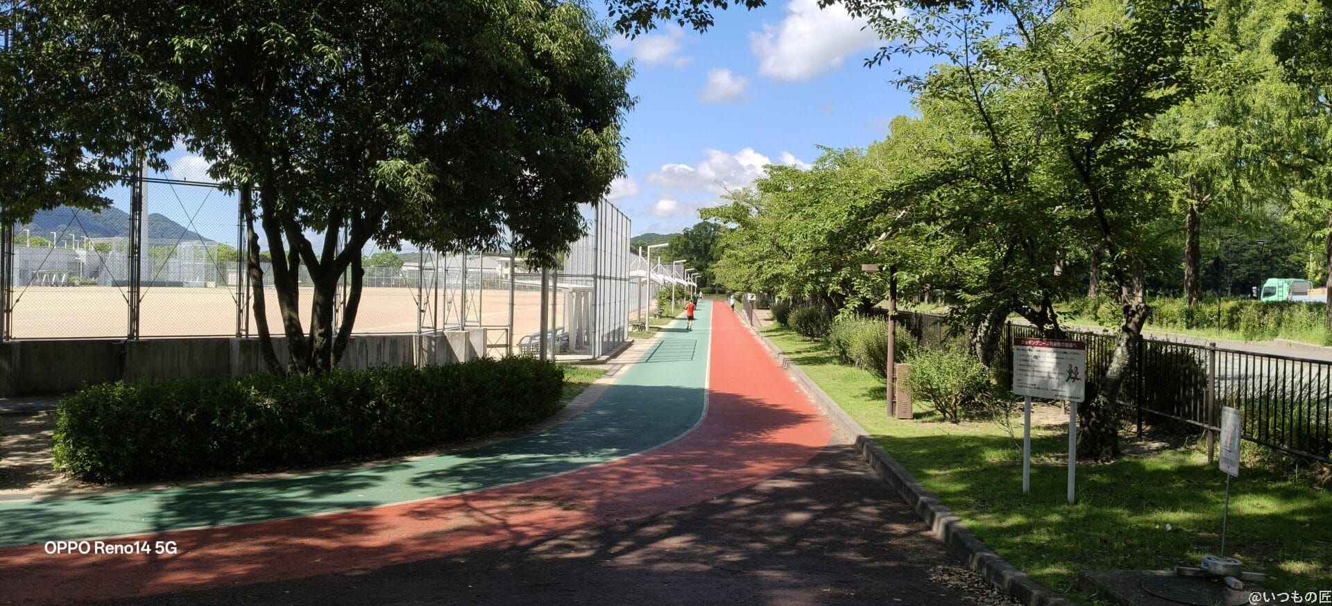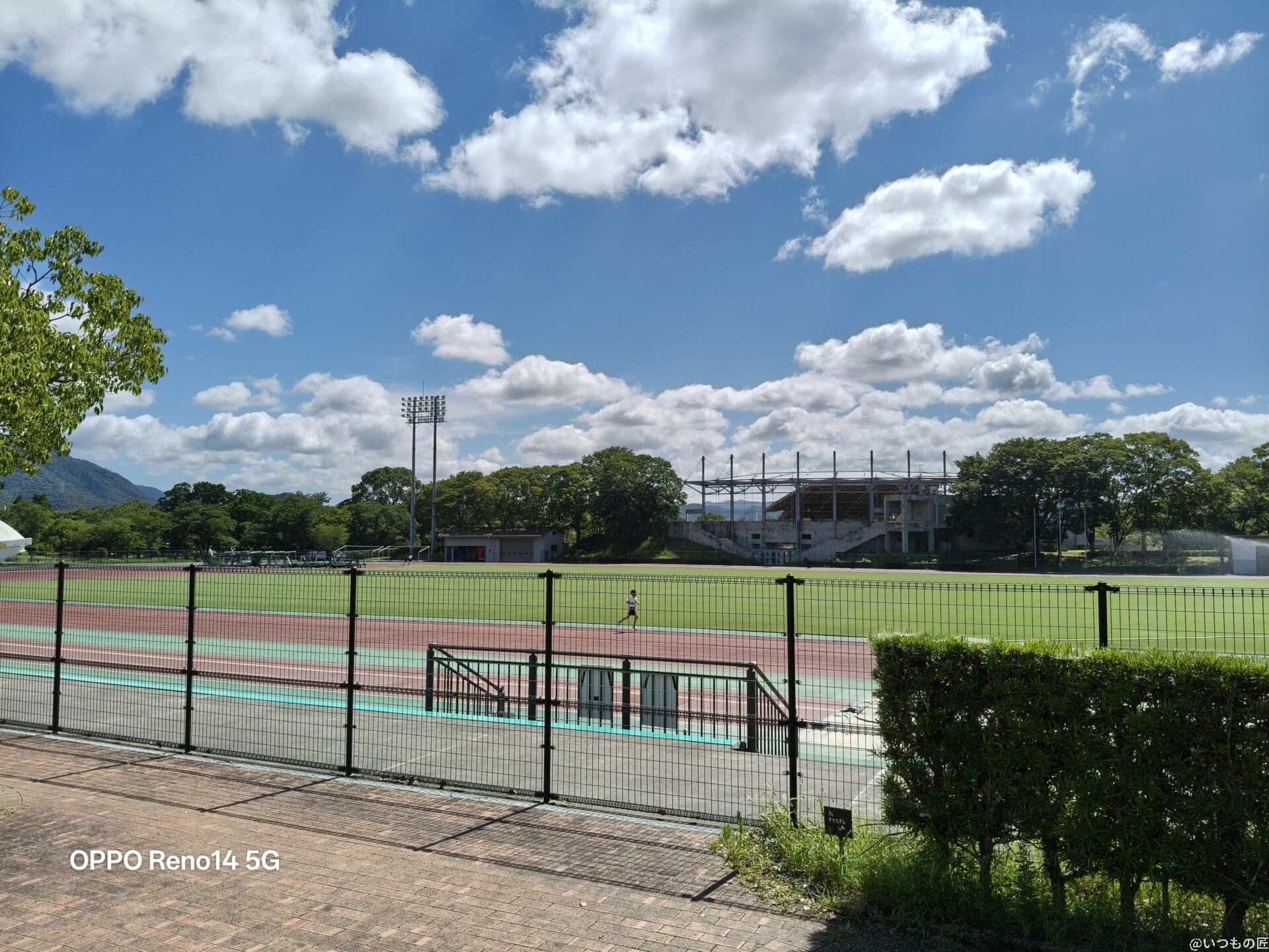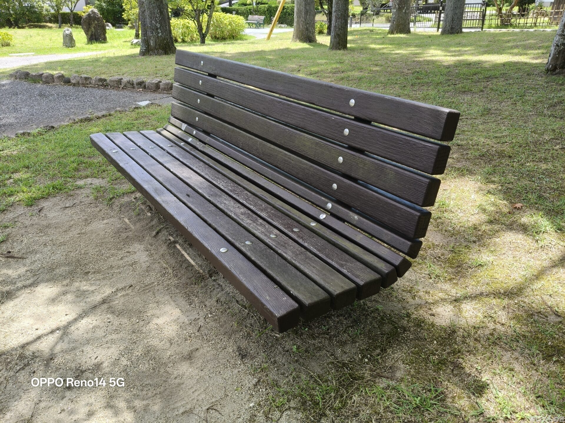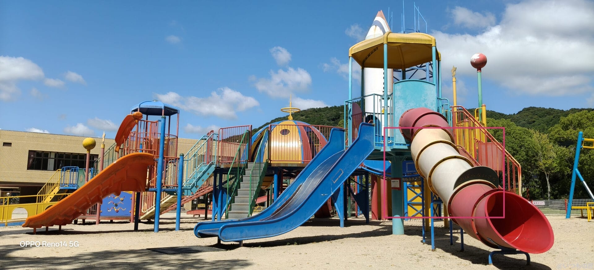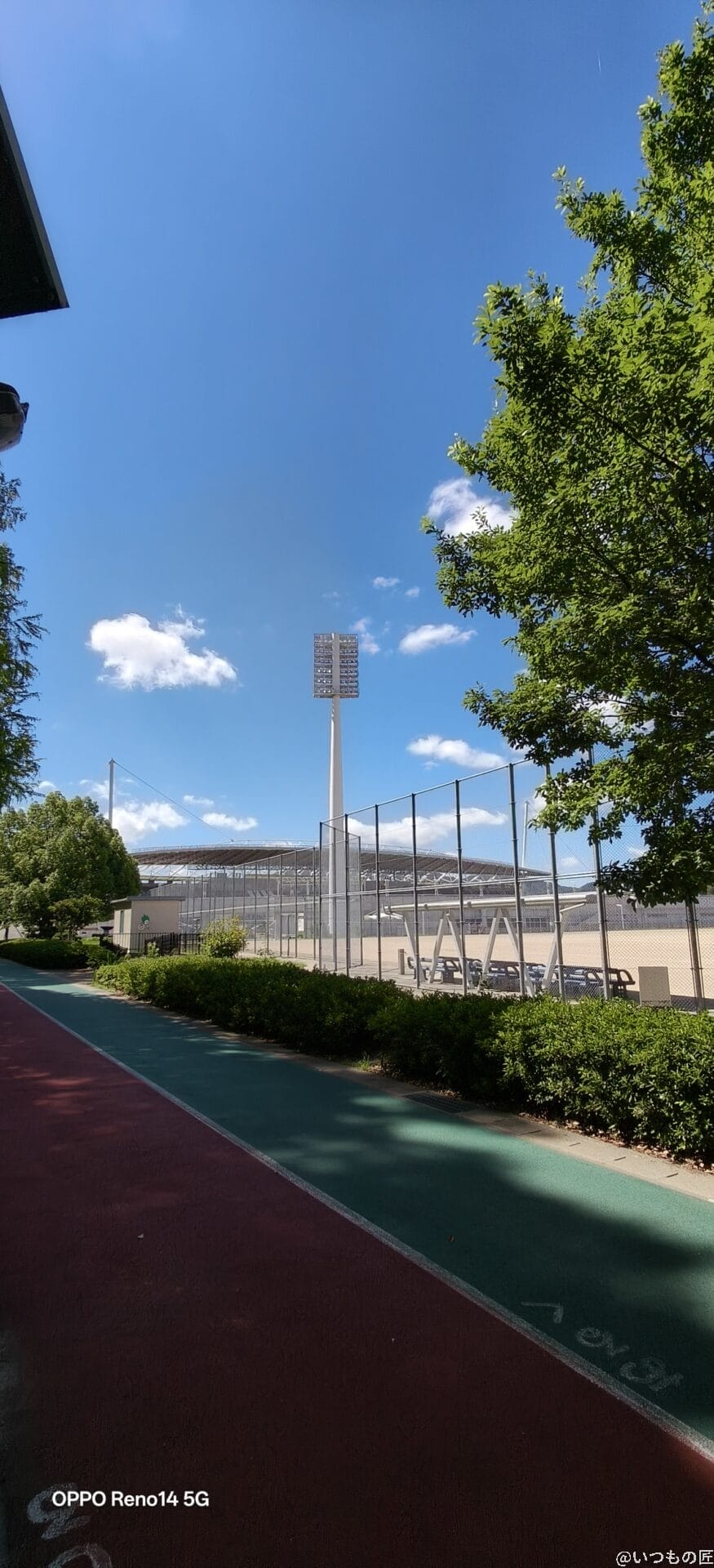 Reno14 5Gは撮影後の補正力が高く、競技場の外壁の色あせた質感やカラフルな遊具も自然な色合いで表現できます。さらに細部描写も優れており、小さな文字まで鮮明に描写されます。