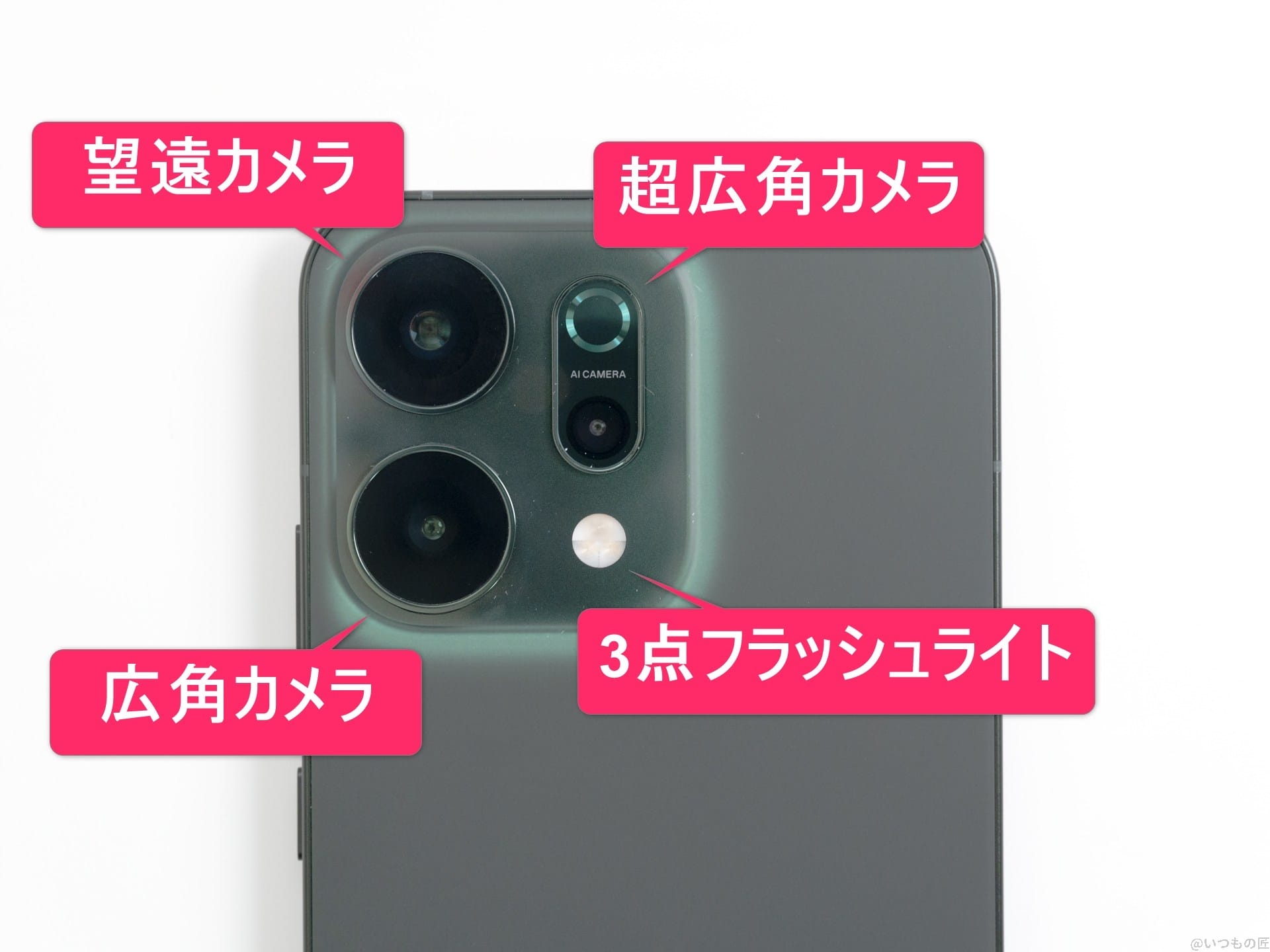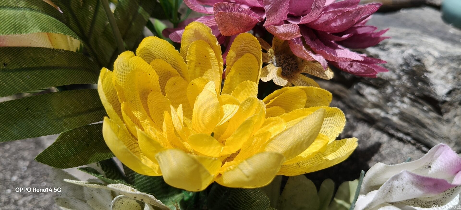 OPPO Reno14 5Gは数センチまで寄れる専用マクロレンズこそ搭載していませんが、オートフォーカス対応の超広角やズーム可能な望遠カメラで接写できます。
