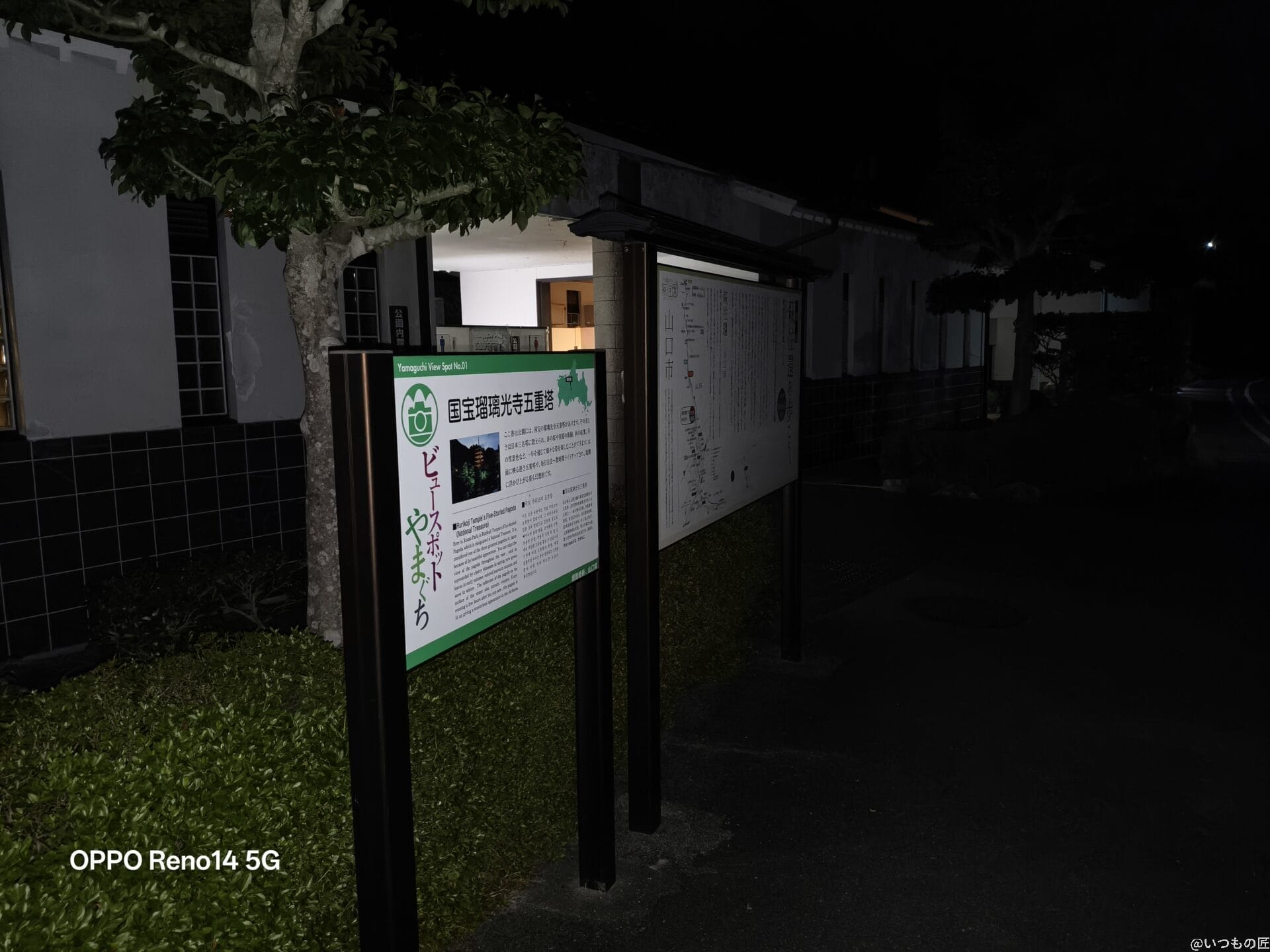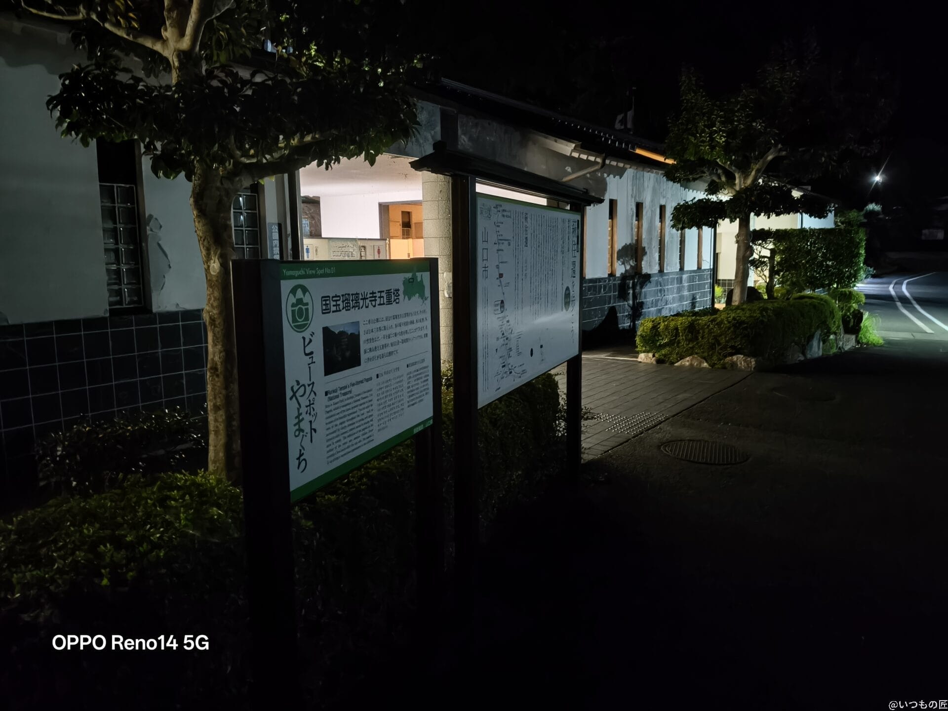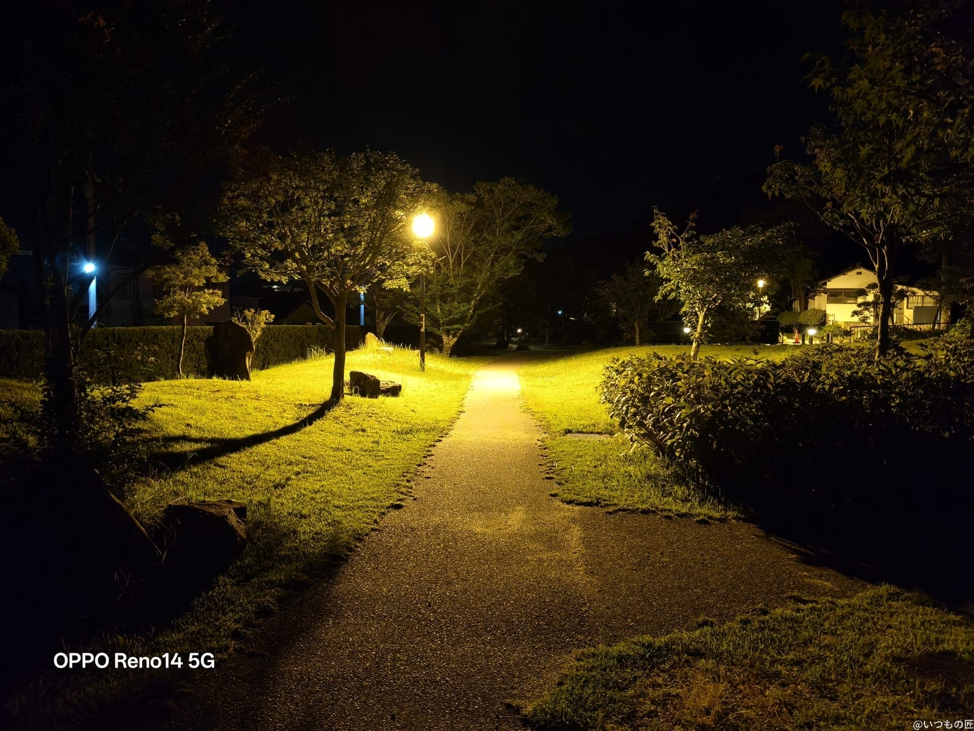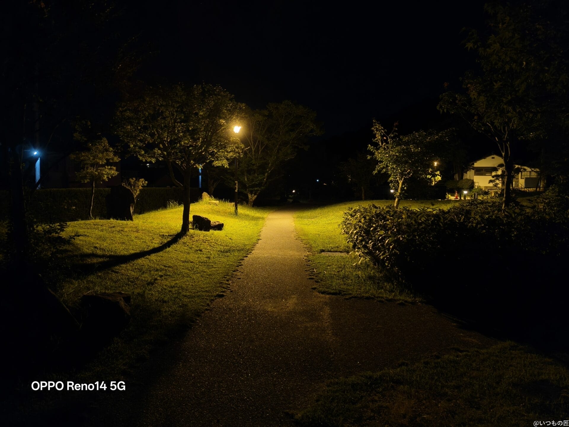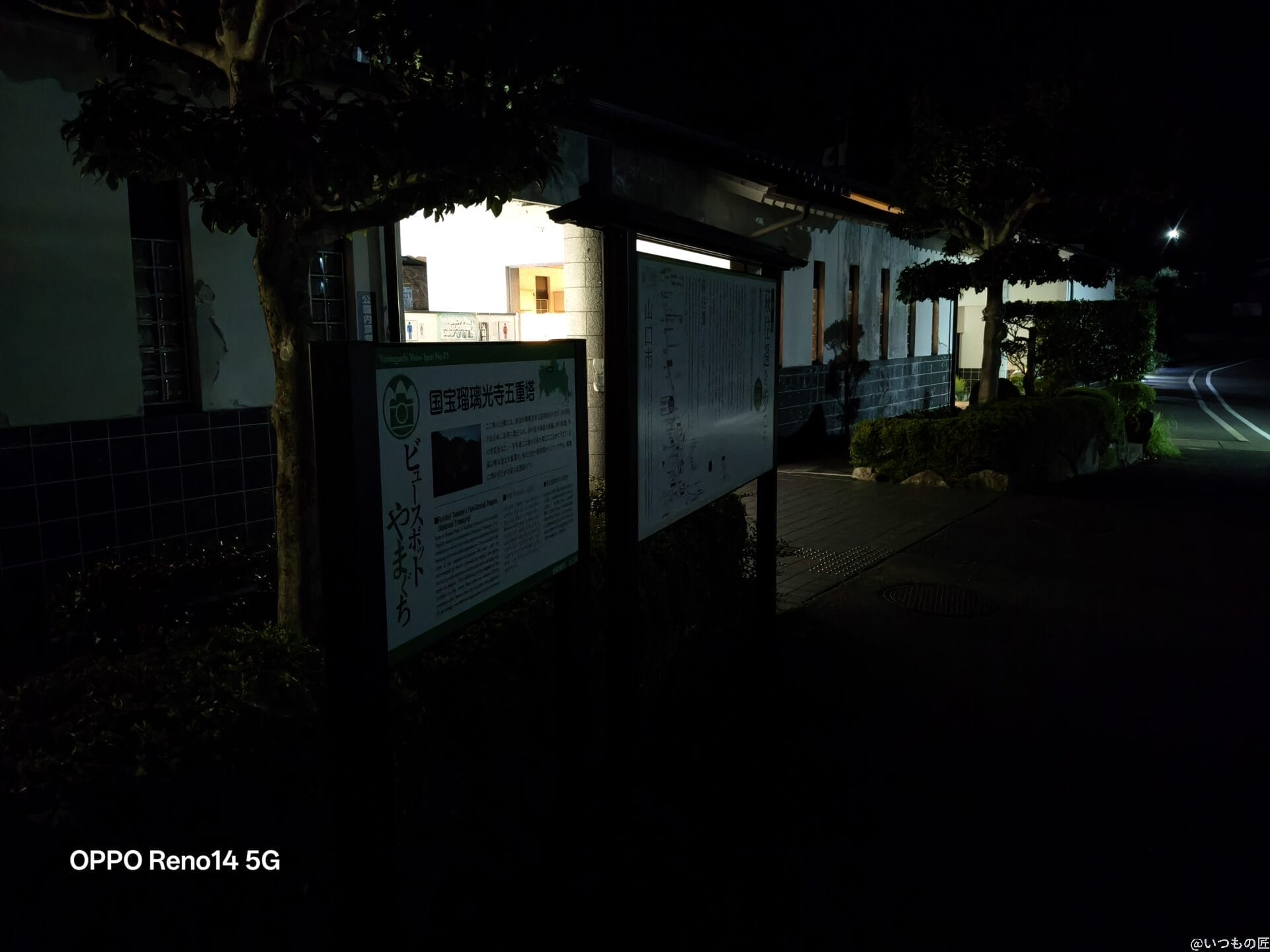 Reno14 5Gの暗所・夜間撮影は通常モードだと明るさが物足りないですが、夜景モードを使えばハイエンドに迫るほど明るく鮮明な写真が残せます。